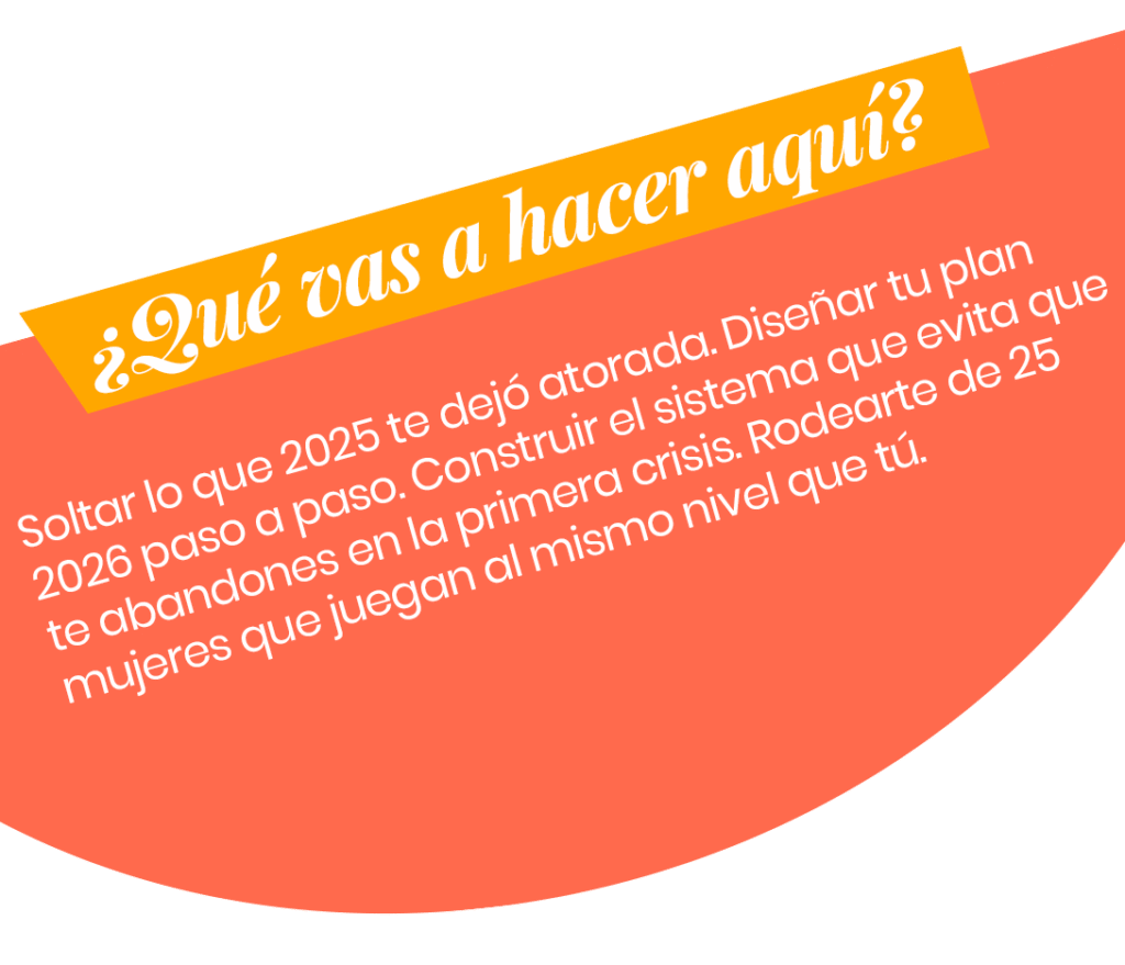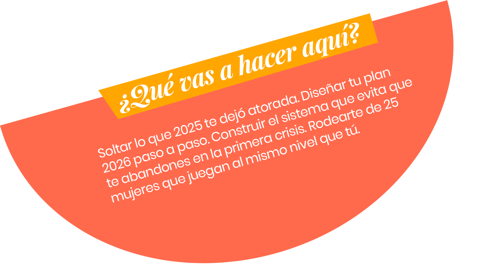 LUGAR 2: Invertiste en diseñar tu 2026. Empiezas enero con un plan claro y un sistema inquebrantable. Tienes 21 días de acompañamiento para sostenerlo. Y una red de mujeres poderosas a tu lado.